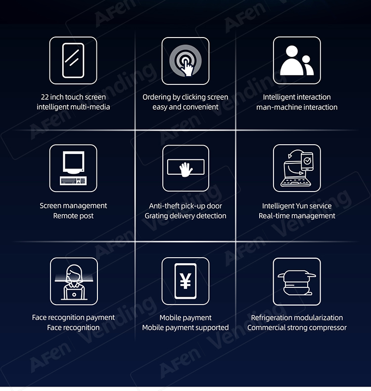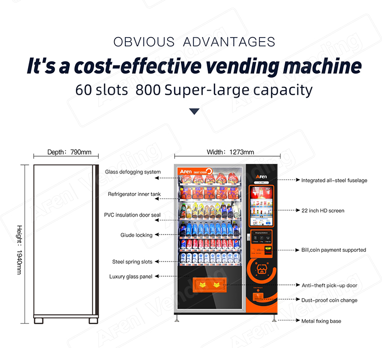 AF-CSC-60C(22SP) automatic snack drink vending machine with ads or touch screen