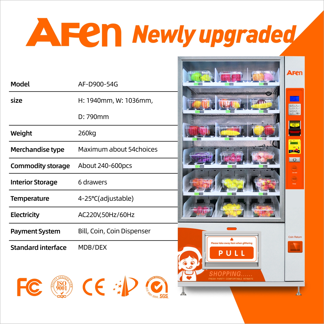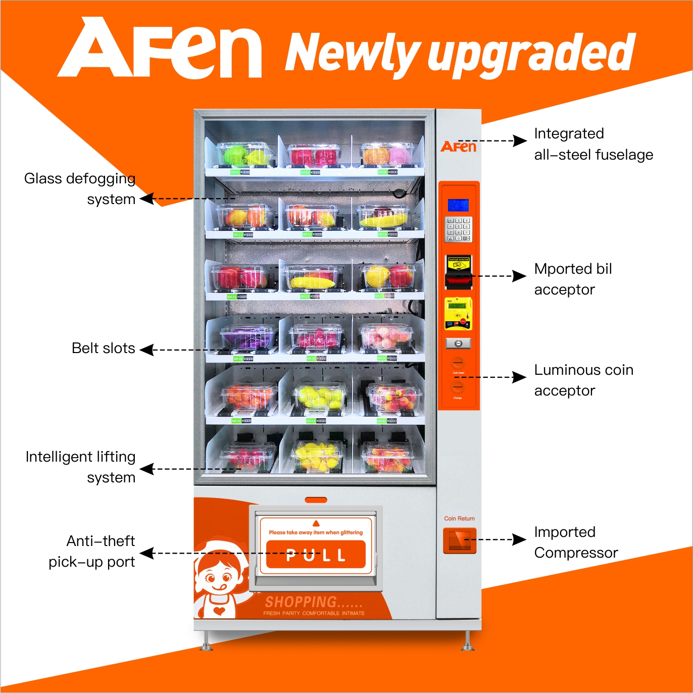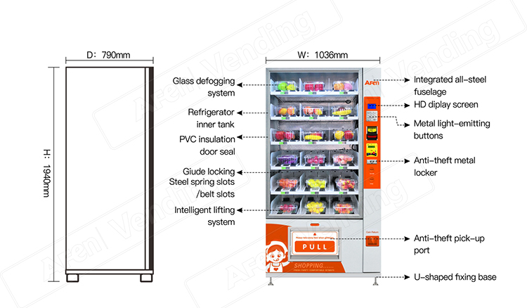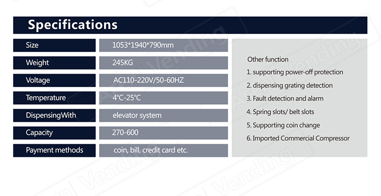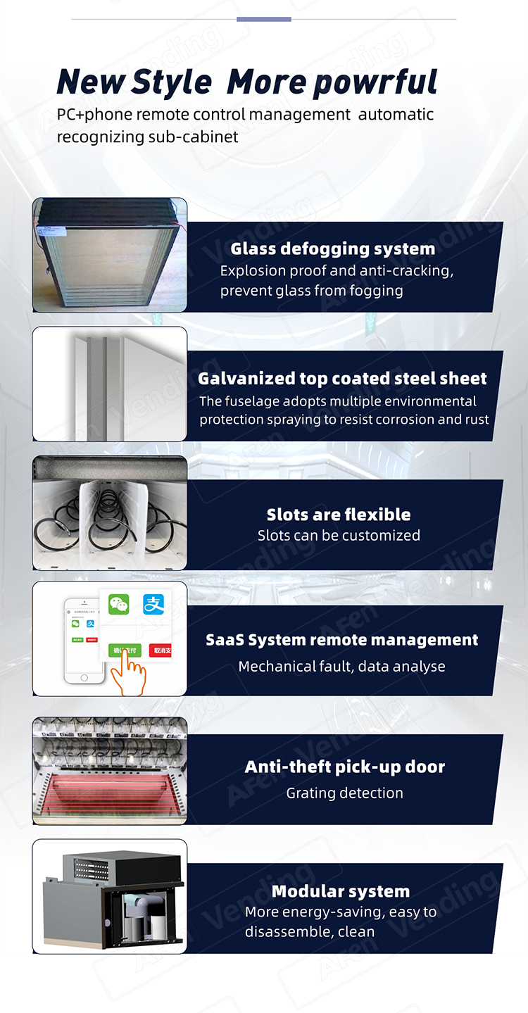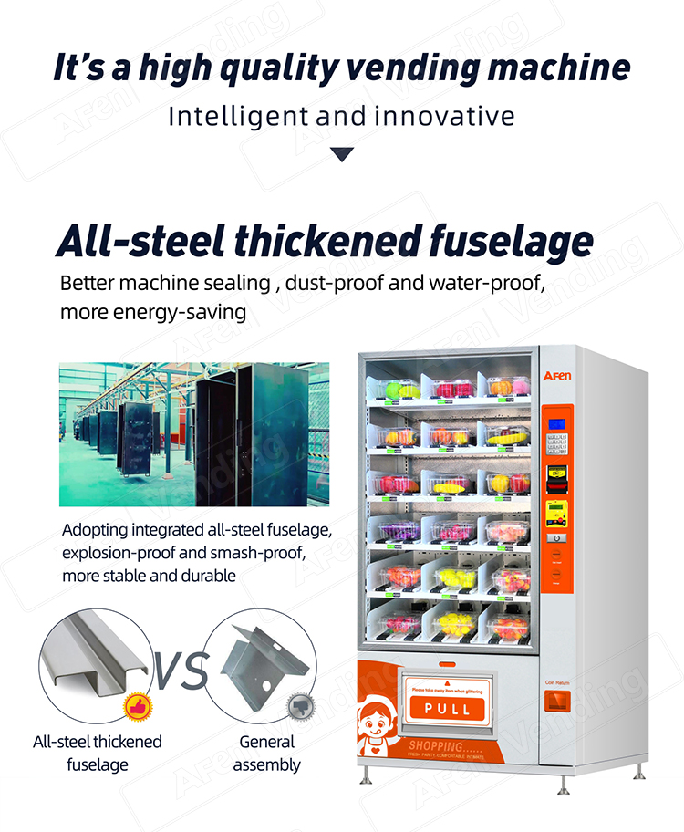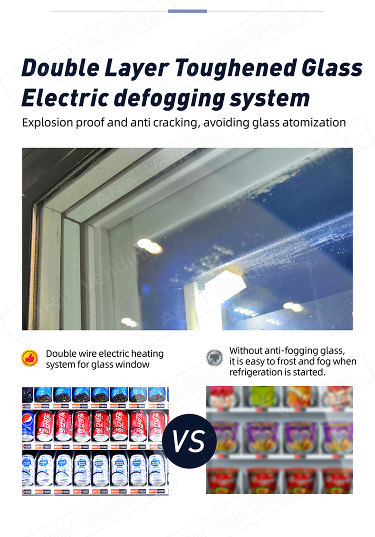 2.High strength & powder coated cabinet with fully insulated material, energy efficient vending unit.