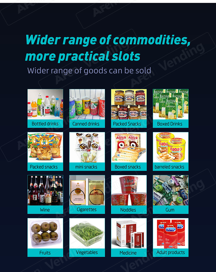 14.Flexible layout for snack,fresh food,cans and bottles.
